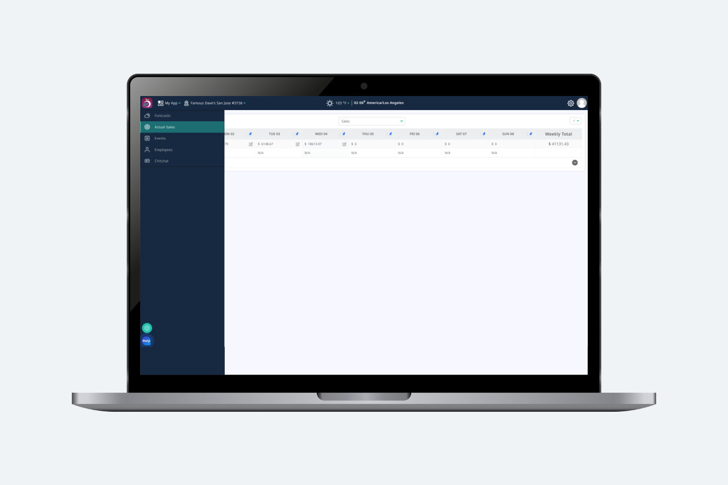 Step 6: Enter the correct sales data for that field. It will auto save when exiting the field.