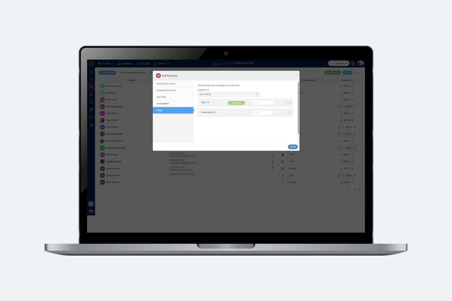 Step 9: Lastly, if certain employees work in multiple stores under the same franchise, they can be shared within the system to schedule and track employee payroll individually for the stores in one place.