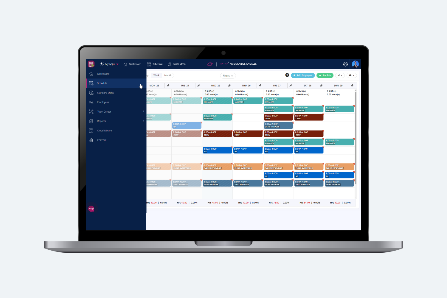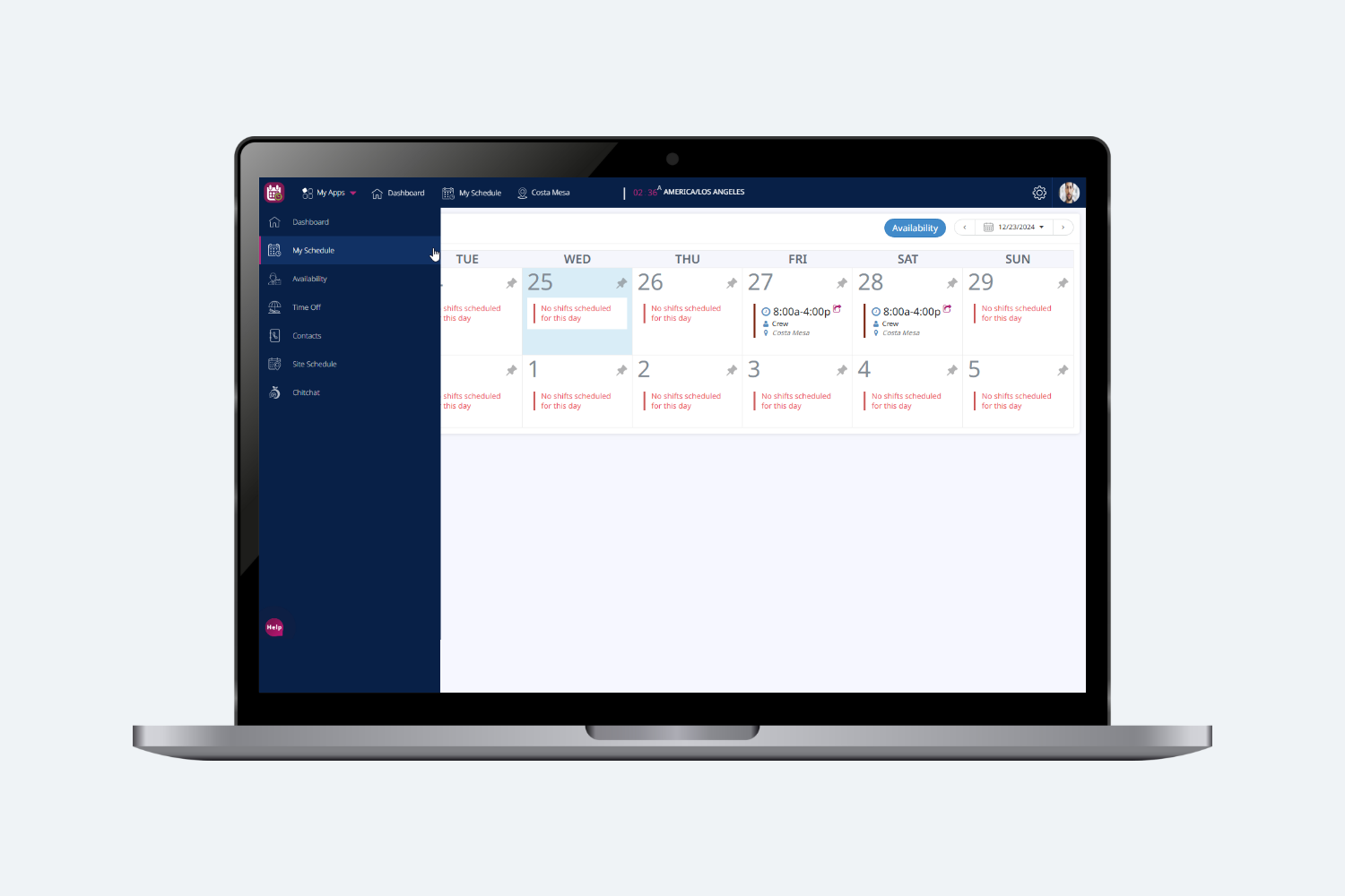 • Crew members have limited functions to perform pertaining to only viewing schedules, updating availability and time-off.