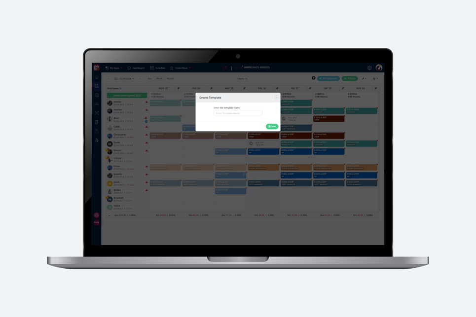 Use this tool to save a weekly schedule as a template and enter a name for the template, and click “Save”.