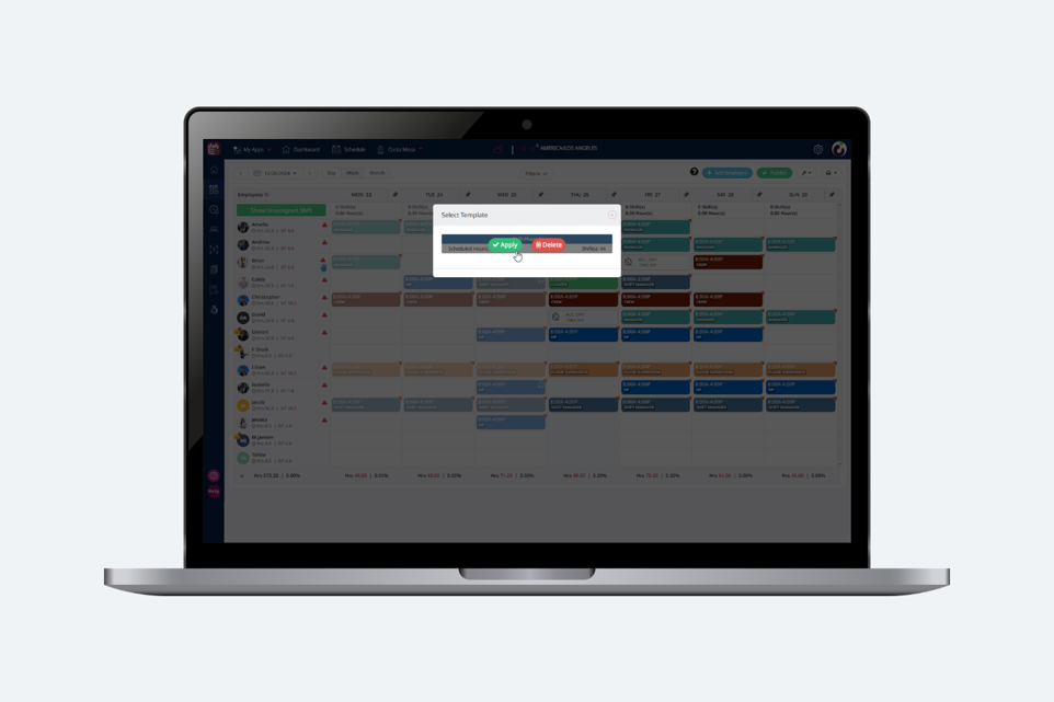 Click “Load Template” and select the template the user wants to apply on the week for which user wants to create the schedule.